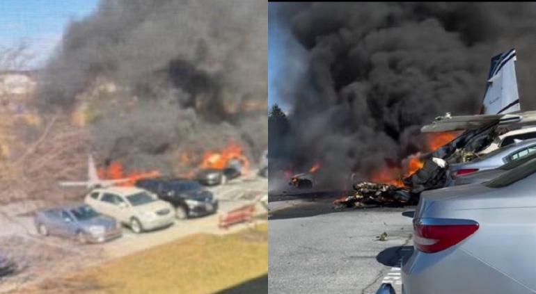 Este domingo, una avioneta con cinco personas a bordo se estrelló en un estacionamiento de una residencia de ancianos cerca del aeropuerto de Lancaster en Mannheim al sur de Pensilvania, Estados Unidos.