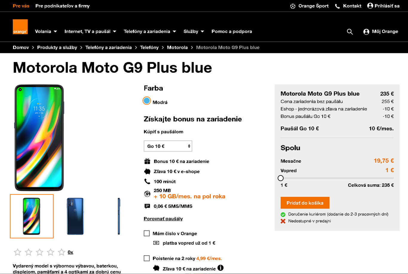 Quandt, indicó que el sitio donde se ofrece el Moto G9, es la tienda en línea del operador Orange, la cual mostró el diseño completamente.