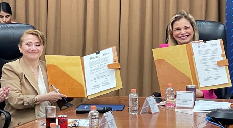 La gobernadora del Estado de Chihuahua, María Eugenia Campos Galván y Katia Georgina Melo, firmaron un contrato del fideicomiso para el Desarrollo Energético Sustentable del Estado.