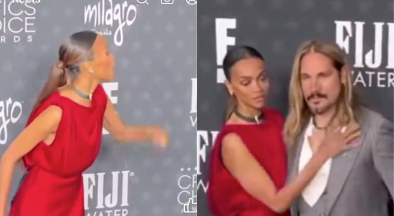 En X compartieron grabación del momento en que Zoe Saldaña le gritó y ordenó a su esposo Marco Perego para que se acercara a ella en una alfombra roja.