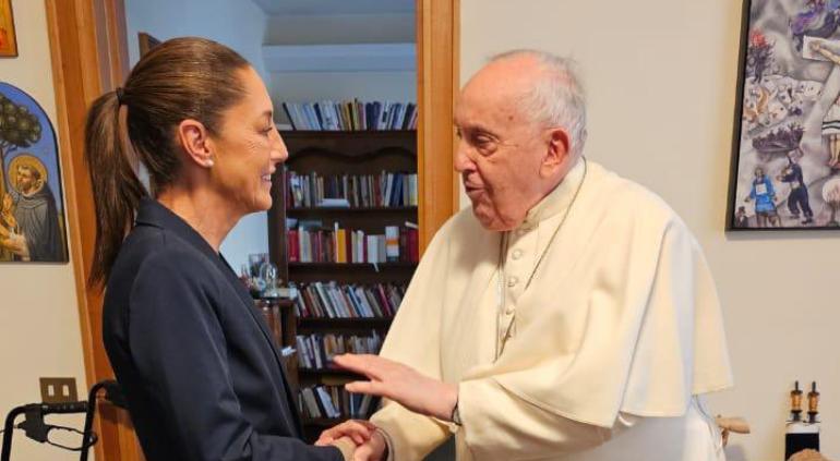 Sheinbaum Pardo, cuando era candidata presidencial, logró reunirse en el Vaticano con Bergoglio por una hora, tras lo cual aseguró que le dio "grandes consejos de vida".