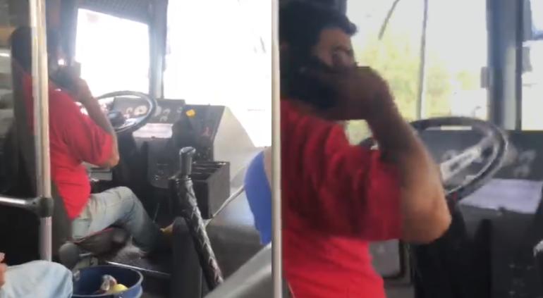En los videos se puede ver al chofer mientras conduce y habla por teléfono, situación que ha molestado a los usuarios.