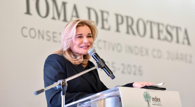 En la ceremonia de Toma de Protesta del Consejo Directivo de la Asociación de Maquiladoras y Exportadoras (Index) de Juárez, la gobernadora Maru Campos destacó la importancia de la colaboración ante los retos binacionales.