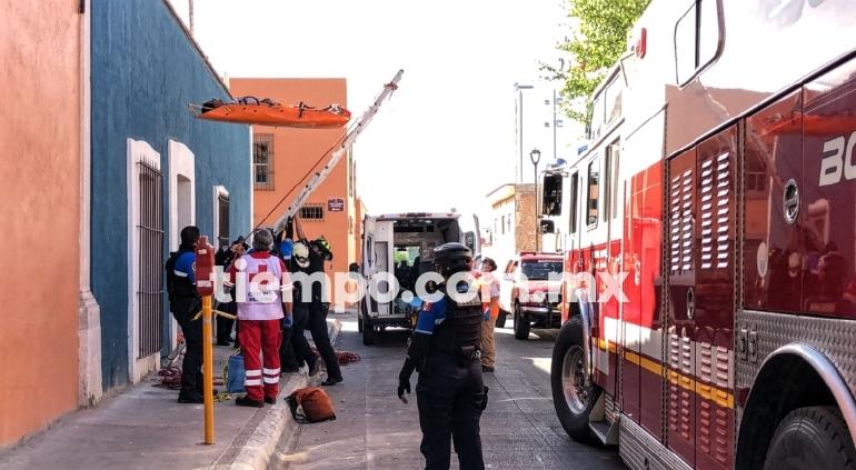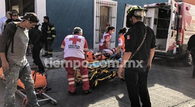 Fue en las calles mencionadas de la zona centro de la ciudad, donde se reportó a un trabajador atrapado luego de que le cayó una barda encima.