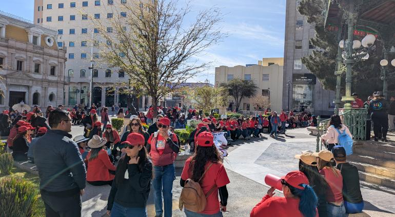 Luego de recorrer desde la avenida Universidad, miles de maestros se reunieron alrededor de la Plaza de Armas, ubicada en el Centro de la ciudad.