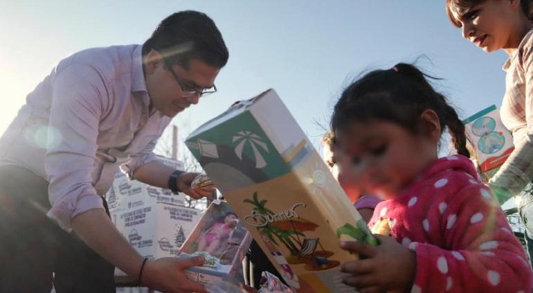 Lleva Rafa Loera juguetes y despensas del Mimbre