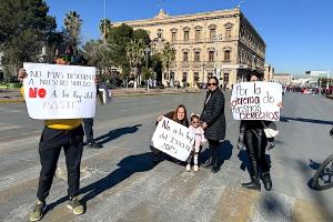 Las calles Vicente Guerrero, Aldama y Juárez, entre otras, fueron bloqueadas por los manifestantes, quienes portaban pancartas y repartían volantes a transeúntes y automovilistas para informar sobre su oposición a la reforma.