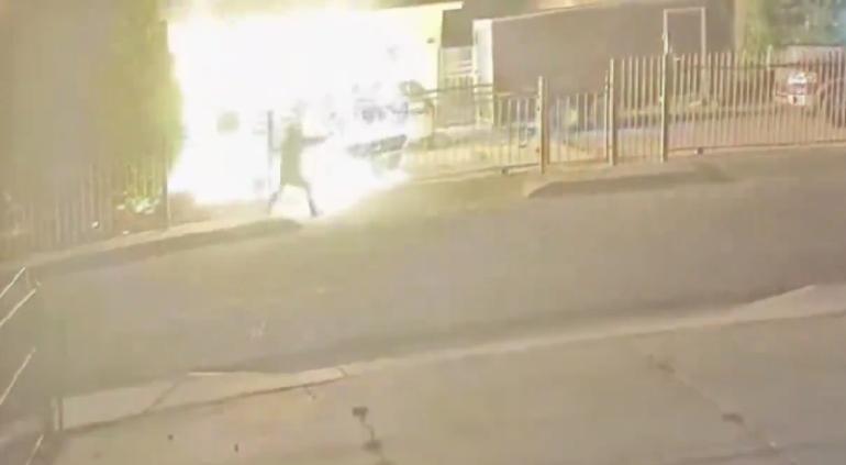 A través de las redes sociales, dieron a conocer un video tomado por una cámara de seguridad en Nuevo México, en donde se puede ver cómo terminó envuelto en llamas tras una explosión.
