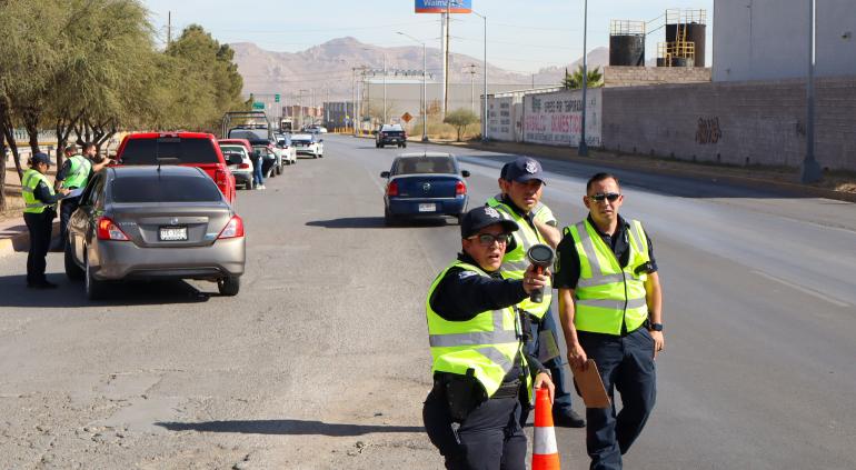 Elementos de la Policía Vial realizar un operativo sobre la Vialidad los Nogales y calle 2 de octubre, en donde infraccionaron a aquellos conductores que transitaban a más de 80 kilómetros por hora.