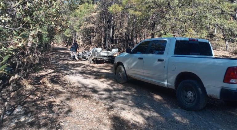 Agentes de la Fiscalía localizaron una pick up calcinada durante la búsqueda y rastreo en diversos poblados del municipio de Madera para buscar a Margarita Imperial Blanco, Yanina Aurora Payan Sotelo, Jesús Armando Durán Meléndez y Vicente Toquinto Casimiro, quienes desaparecieron cuando viajaban de Parral a Madera.