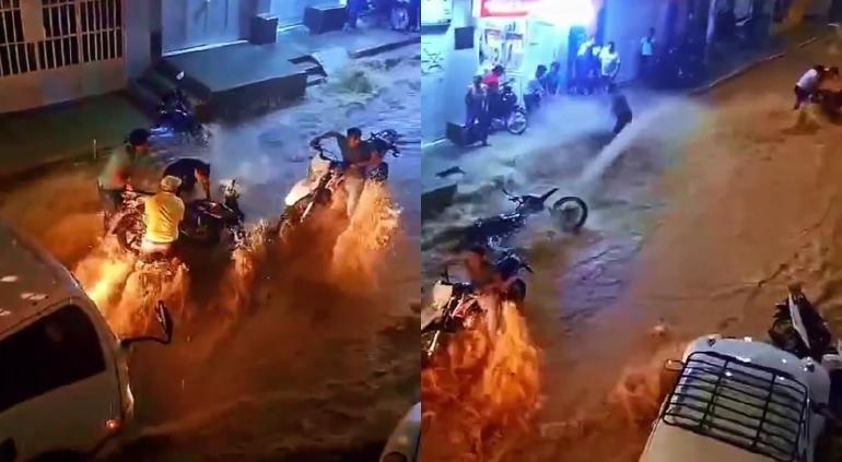 De estos hechos, se viralizó en redes un video tomado en Cajamarca, en donde se ven las calles inundadas y cómo es que el agua se lleva varias motos que estaban estacionadas y tumba a algunas personas.