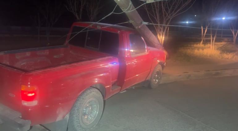 El conductor de una pick up Ranger de color rojo conducía por dichas calles cuando perdió el control del volante y se estrelló contra el poste, derribándolo.