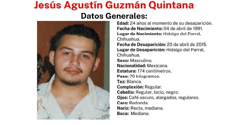 El próximo 20 de abril, se cumplen exactamente 10 años de la desaparición del ciudadano Jesús Agustín Guzmán Quintana. Su reporte de ausencia se generó desde el 2015.