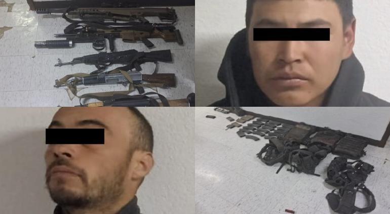 Tras el intercambio de disparos, los agresores intentaron huir, pero fueron detenidos más adelante. Los aprehendidos, identificados como Pablo “M” y Gerardo “C”, llevaban consigo cuatro armas largas, un aditamento lanzagranadas, un rifle Barrett, cartuchos, cargadores, equipo táctico y el vehículo en el que se transportaban.