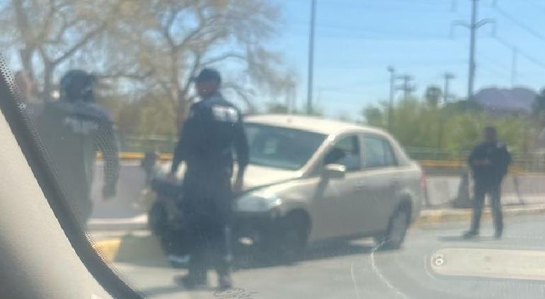El conductor de un Nissan, Tiida, quedó sobre la banqueta en la Vialidad la Cantera. El accidente generó congestionamiento vehicular.