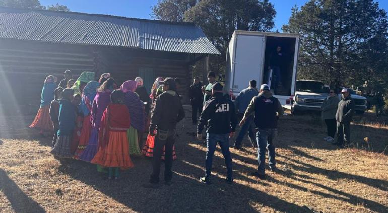 Elementos de la Fiscalía implementaron un operativo especial de resguardo y custodia en el municipio de Balleza para la entrega de apoyos por parte de Gobierno del Estado en la comunidad de La Hierbabuena.