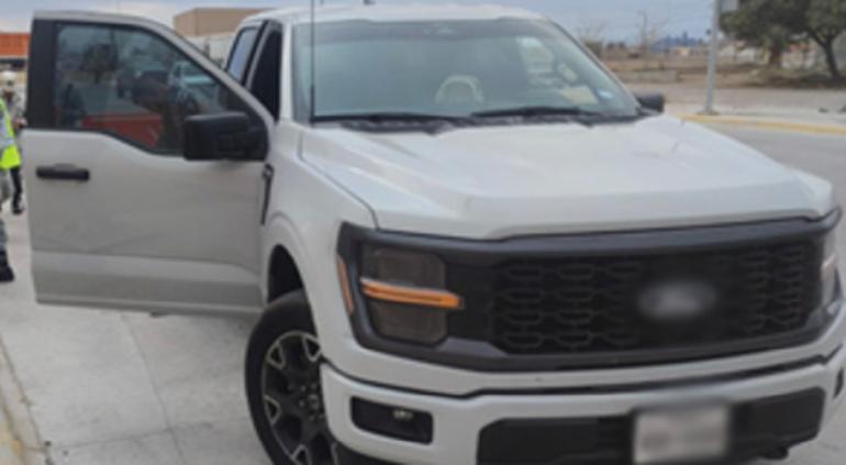 El vehículo en cuestión es una camioneta Ford modelo F-150 color blanca.