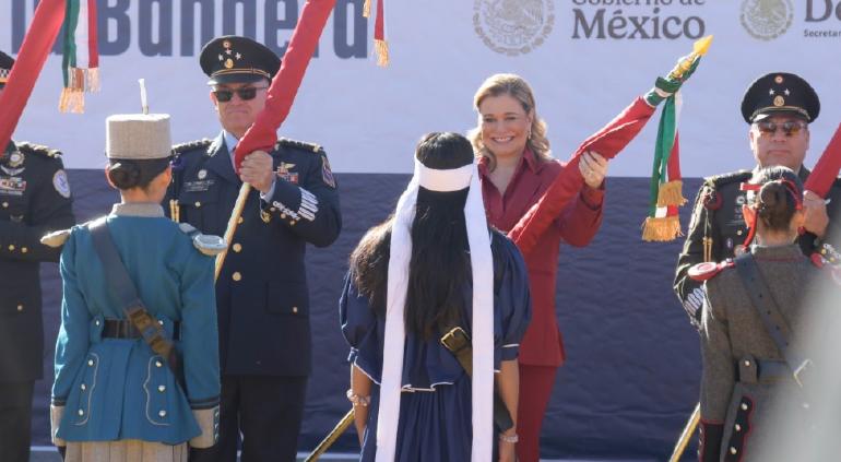 Durante el acto, en que 150 alumnas y alumnos de primaria y secundaria juraron su lealtad al lábaro patrio, afirmó que hoy más que nunca resulta indispensable lograr la unidad como nación.