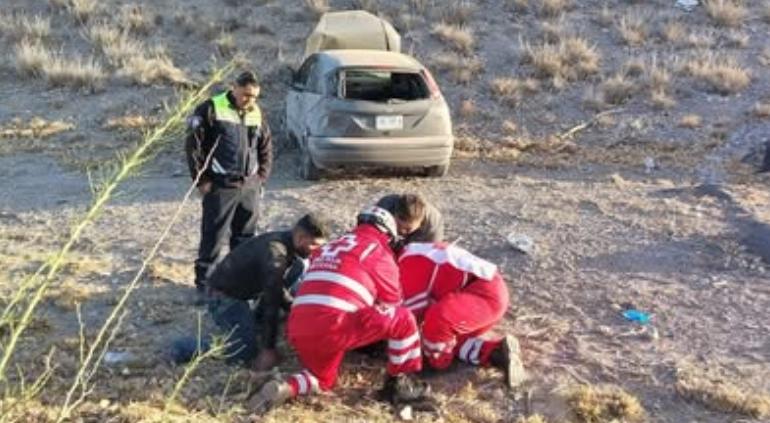 Tres personas resultaron con lesiones al circular por el puente de la Y en Meoqui durante la mañana de este sábado.