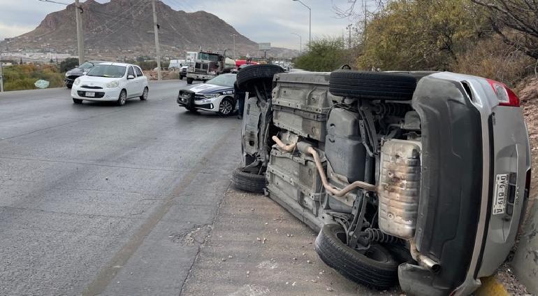 La conductora de una camioneta Jeep, Compass volcó a la altura del kilómetro dos encendido de Chihuahua- Aldama, luego de perder el control de la unidad.