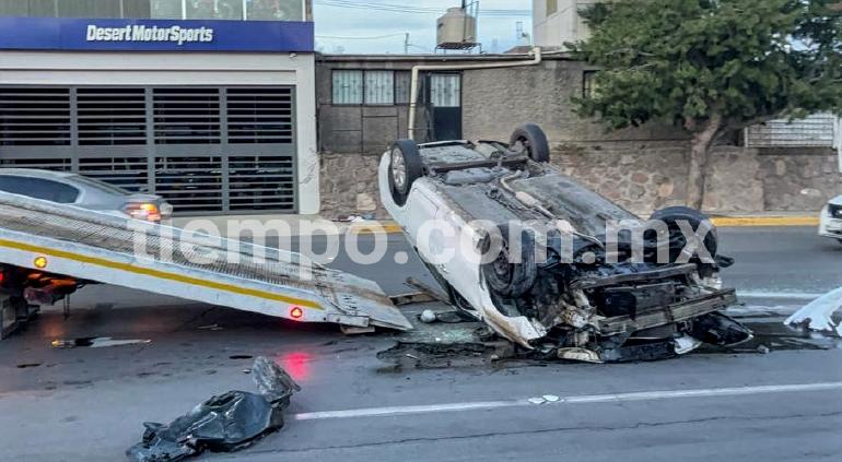 Vuelca tras chocar contra muro en la Cantera y casi Washington