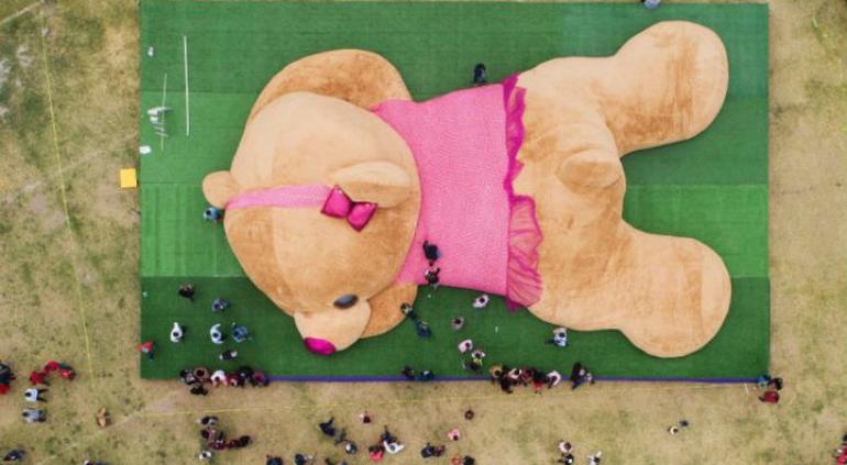 “Xonita”, originaria del municipio de Xonacatlán, Estado de México, rompió el récord Guinness al convertirse en la osa de peluche más grande del mundo.