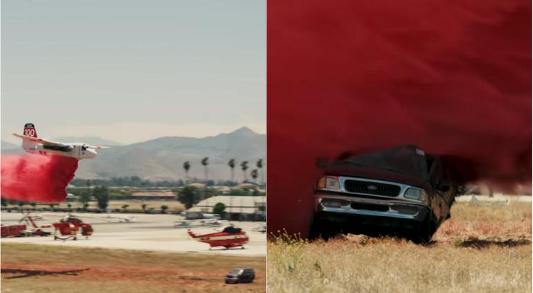 Entre sus actividades, mostraron el descargar una carga completa de retardante de llamas sobre una SUV Ford Expedition, para demostrar el efecto que puede tener esta práctica tan necesaria para combatir incendios forestales.