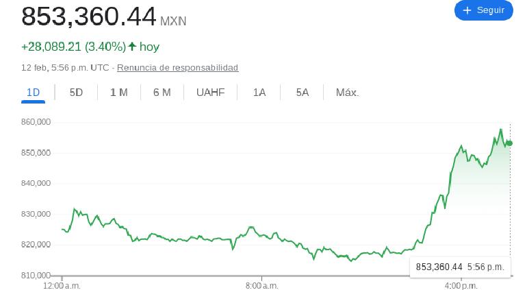 En el último día ha subido unos 28 mil pesos mexicanos, un aumento del 3.4% de su valor.