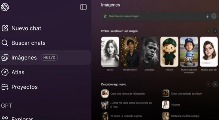 ChatGPT lanzó una nueva sección llamada Imágenes, para crear y editar fotografías con inteligencia artificial de forma sencilla.