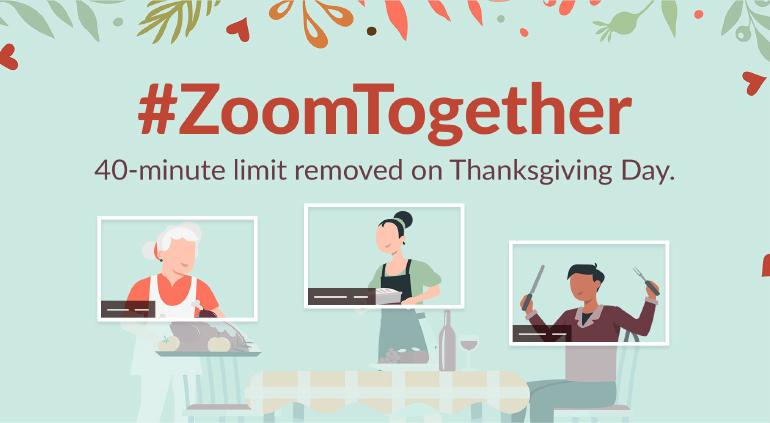 La plataforma Zoom de videollamadas anunció que removería temporalmente el límite de 40 minutos en sus reuniones para el Día de Acción de Gracias y que las reuniones familiares se realicen sin problemas.
